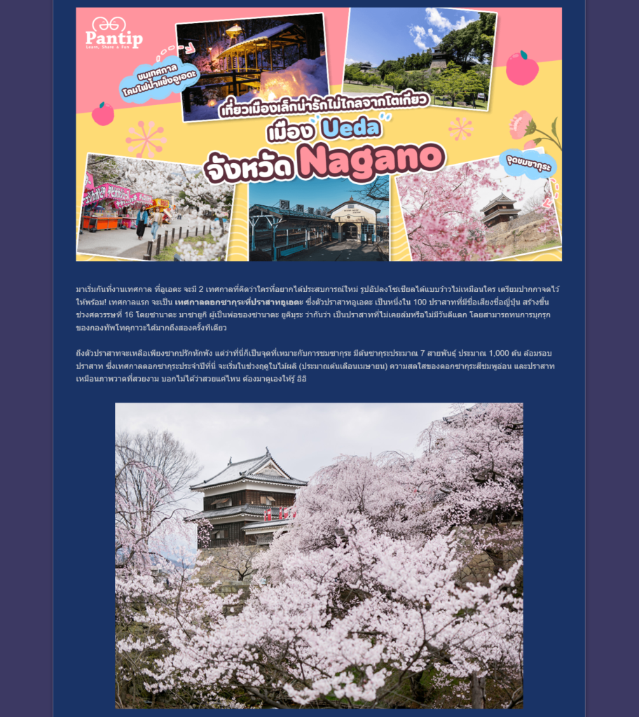 Pantip記事広告の実例として、長野県上田市を“桜”を切り口に紹介した記事をご紹介します。