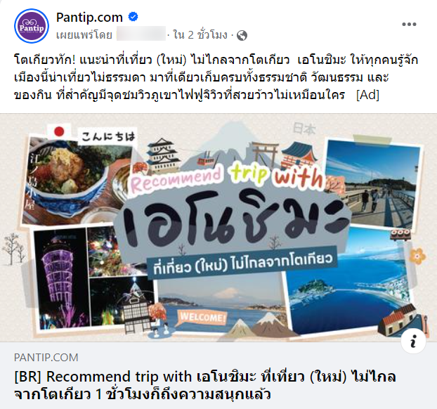 Pantip記事広告の実例:神奈川県藤沢市・江の島のPR