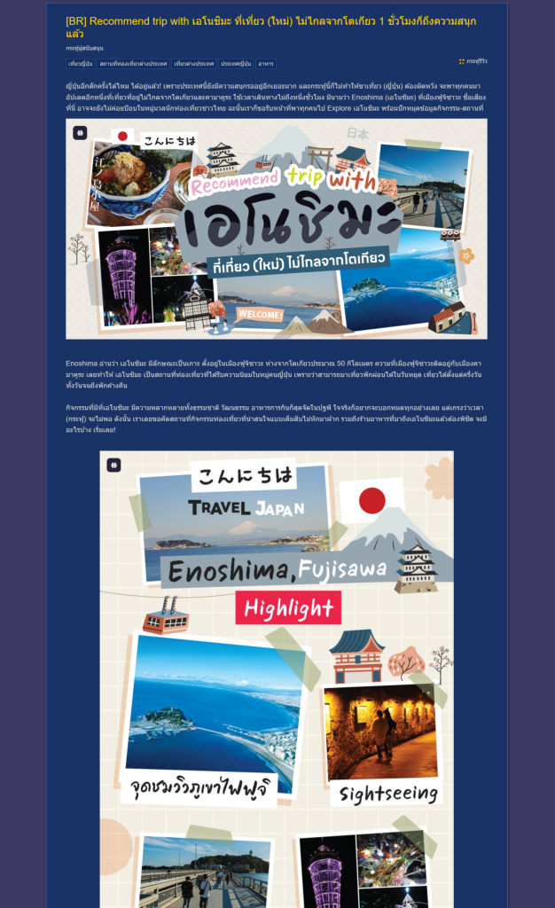 実際のPantip記事広告として、神奈川県藤沢市の観光地「江の島」をSNSと記事広告を通じてPRした事例をご紹介します。