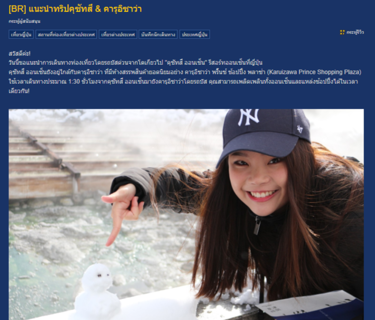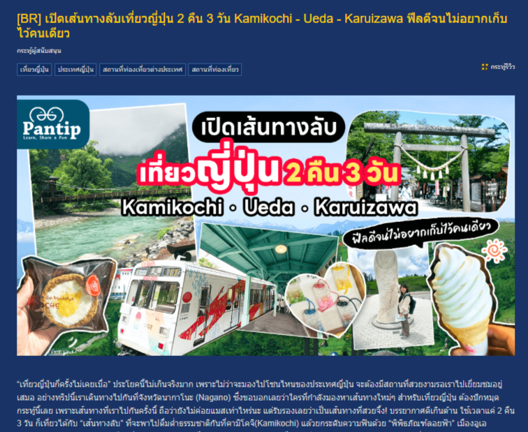 - Pantip上で「高速バスでめぐる草津温泉&軽井沢1泊2日」のリアルな体験ストーリーを発信。