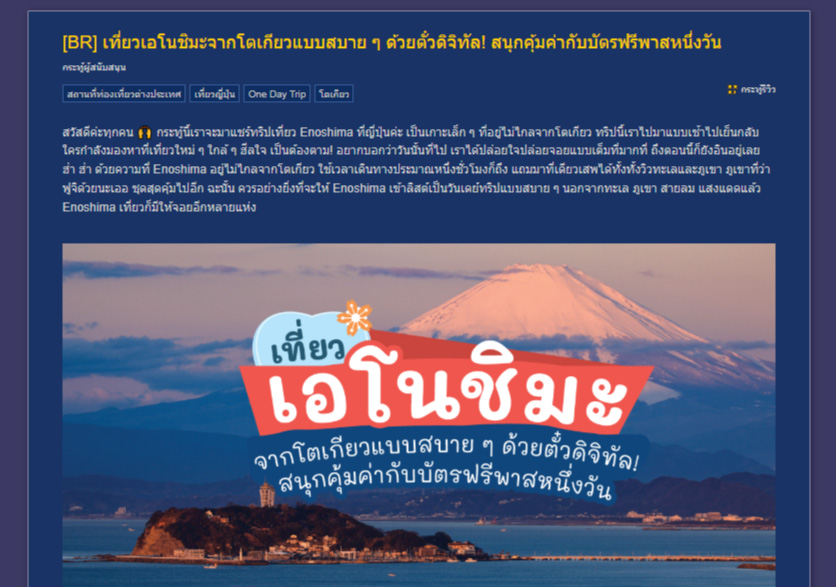 - Pantip上で「東京からこんなに近いのに、日本らしさがたっぷり」と驚きの声が上がる反響を得ました。