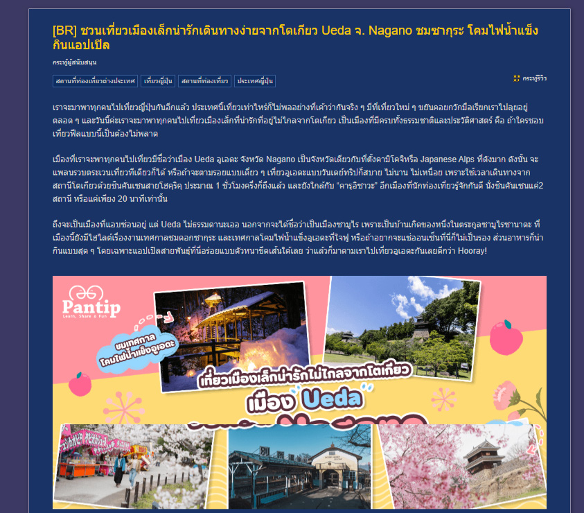 - Pantip上で「高速バスでめぐる草津温泉&軽井沢1泊2日」のリアルな体験ストーリーを発信。